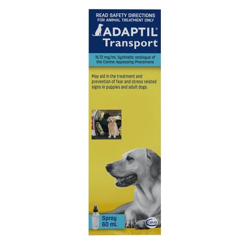 Adaptil Transport Spray is an anti-stress spray that may aid in the prevention and treatment of fear and stress related signs in puppies and adult dogs. It is designed to help your dog feel calm and confident in situations they might find stressful such as thunderstorms, vet visits, car travel, fireworks, loud parties or introducing new pets. Is a synthetic copy of the pheromones released by a mother dog to comfort her puppies each 60 mL bottle of Adaptil Spray contains +/- 50 applications odourless and easy to use can be sprayed directly into the car, on bedding, inside crates and kennels effective for up to two hours and safe for dogs of all ages can be used alone or in combination with an Adaptil Diffuser and Refill for added support.