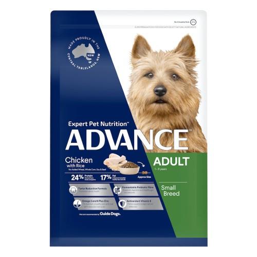 Every ingredient in this formula has been carefully selected by the insanely committed guys and gals in the Advance lab for the sole purpose of improving and supporting your dog’s health and total well-being. From the tips of his coat hairs to the innermost workings of his immune system, your pet’s needs are covered by Advance Adult Small Breed Chicken. Product details Fortifies the immune system with scientifically proven levels of Vitamin E to help increase antioxident levels enhances skin and coat health boosts healthy bacteria in the gut with the inclusion of beet pulp and inulin which act as natural prebiotics prevents build up of plaque and calcification and promotes good dental health suitable for adult toy and small breed dogs from 12 months of age.