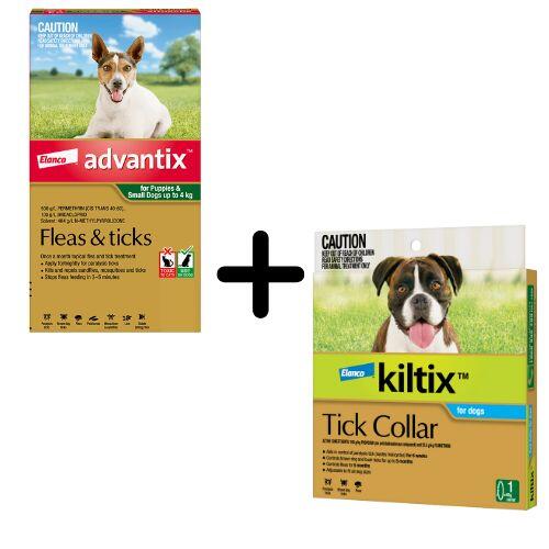 Fortify your dog’s flea and tick armour with this killer combination of Kiltix dog collar and Advantix tick and flea treatment for puppies and small dogs under 4kg. Kiltix repels and kills ticks and fleas, particularly around the neck, ears and front limbs, which is the favoured settling-down spot for ticks. Advantix does the same, but it also provides protection from mosquitoes and sandflies, and helps to control lice. Separately, these products provide effective and safe protection from fleas and ticks; together, they’re a veritable force field for your dog. Product details Combination of Kiltix adjustable flea/tick collar and Advantix flea/tick treatment provides double protection against fleas and ticks – including the Australian Paralysis tick also protects against sandflies, mosquitoes and lice.