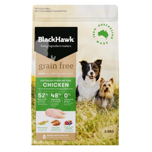 Not all dogs process grains well. Black Hawk Adult Dog Grain Free Chicken is specifically designed for dogs who operate better on a diet that’s low in fibre. Product details Grain-free range with highly digestible meat caters specifically for dogs who don’t function well with grain in their diet high-protein, low-fibre free from artificial colours, flavours and preservatives Australian hormone-free chicken is the number 1 ingredient formulated to be gentle on stomach and skin contains chondroitin and glucosamine to help support active joints made with emu oil which may help skin, coat and joints.