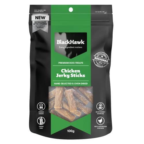 Black Hawk Chicken Jerky Sticks have been crafted with the health and vitality of your dog at heart. Made from responsibly sourced, human-grade local ingredients in regional Australia, they deliver nature’s goodness from the paddock to your best friend. Product details Fresh from the farm from the paddock to your best friend human-grade prime meats are hand-selected, cut and slowly oven-dried to lock in nutrients and flavour made in regional Australia 100% responsibly sourced Australian chicken grain free just like premium jerky for humans, once opened, they need to be stored in the refrigerator to maintain quality, taste and freshness and consumed within ten days are approximately 40mm long and 8-10mm thick ideal for small to medium dogs over 12 months of age.