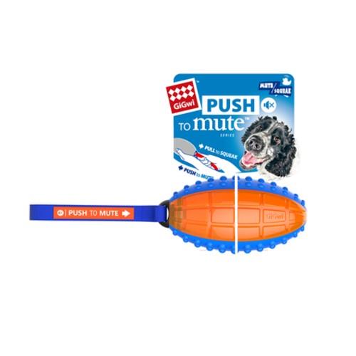 It's not often we get to control the level of noise generated by a rugby ball. The GiGwi Push to Mute Rugby Ball, however, can be transformed from a loud, squeaky ball of fun into a completely quiet, soothing plaything for your dog. All with the simplest push or pull of a strap. Together with its durable thermoplastic construction, bright and vibrant colours and wonderfully textured surface, the GiGwi Push to Mute Rugby Ball delivers endless fun and entertainment for you and your dog. Product details Rubber toy for dogs internal squeak can be turned on and off tough thermoplastic construction bright and vibrant colours textured surface.