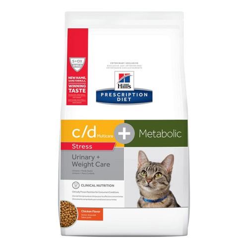 Hills Prescription Diet c/d Multicare Stress Plus Metabolic Dry Cat Food has been formulated to support your cat’s nutritional needs during weight loss and management, while also improving their urinary health. Product details Has controlled levels of magnesium, calcium and phosphorus help to promote a desirable pH level in the urine designed to naturally work with your cat’s metabolism helps to dissolves struvite stones in as little as 7 days helps your pet feel full and satisfied between meals contains a unique fiber blend of fruits and vegetables to help manage stress.