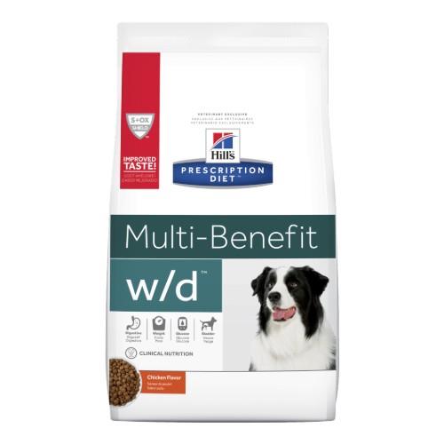 Hills Prescription Diet w/d Multi-Benefit Dry Dog Food has been designed to help your dog lead a healthy and active life. This recipe has been clinically proven to help your dog reduce excess fat and help maintain a healthy weight. Product details Helps manage multiple conditions that respond to fibre, weight and glucose management, digestive issues, and urinary healt inclusion of L-carnitine increases energy and burns fat has a blend of soluble and insoluble fiber to keep them feeling full and satisfied formula helps to stabilise blood glucose levels in diabetic dogs helps to metabolize fat and maintain lean muscle helps to maintain a healthy weight promotes urinary tract health clinically proven antioxidants help to support a healthy immune system.