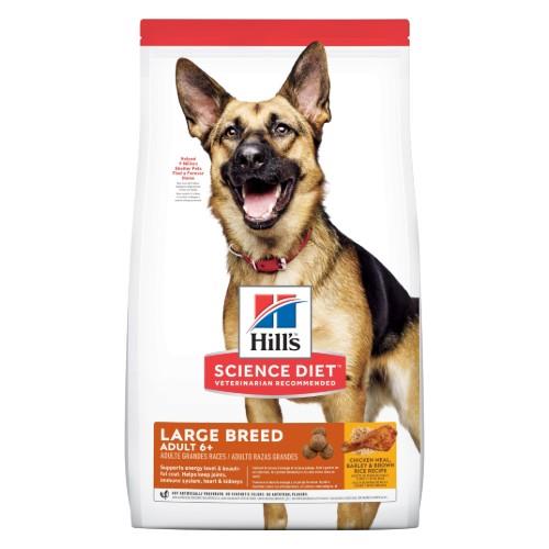 Hills Science Diet Adult Large Breed 6+ Senior Dry Dog Food provides precisely balanced nutrition to sustain mobility and ideal body weight. Product details For large breed dogs 6+ years of age that weigh 25-50kg, and giant breed dogs weighingover 55kg that are 5+ years of age enriched with L-carnitine to help turn fat into energy contains a natural source of glucosamine and chondroitin sulphate to maintain healthy joints natural ingredients provide easy-to-digest nutrition contains a balanced set of minerals help support a healthy heart, healthy kidneys, and a healthy bladder in larger breed dogs has omega-6 fatty acids and vitamin E nourish the skin and coat.