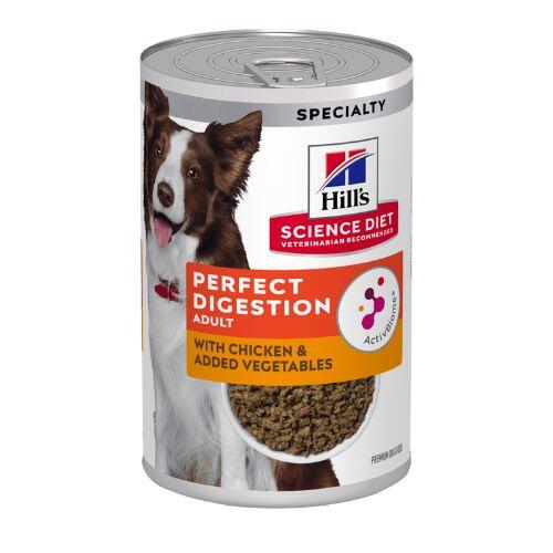 Hills Science Diet Adult Perfect Digestion with Chicken and Vegetables Canned Dog Food's breakthrough nutrition supports ultimate digestive well-being & healthy microbiome Product details Contains ActivBiome+, an exclusive blend of prebiotics, with added pumpkin breakthrough nutrition that supports each dog’s unique gut microbiome for healthy digestion balanced nutrition that helps your dog feel their best perfect taste and texture for picky eaters.