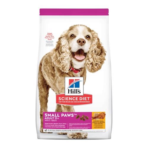 Your little dog is still a full-grown canine, so make sure your small or toy/mini breed dog has the precise nutrition of Hills Science Diet Adult Small Paws 11+ Senior Dry Dog Food. This product will promote lifelong health for your adult small breed dog! Product details Made with easy-to-digest ingredients that are specially formulated for a little dog's stomach small kibble suited for a little canine mouth has high-quality protein for lean muscle maintenance contains nourishing omega-6s and vitamin E to promote healthy skin and a healthy coat made with natural ingredients and contains a proprietary antioxidant blend that will support your tiny dog's immune system suitable for small breed (weighing up to 10kg) senior dogs over 11 years of age.