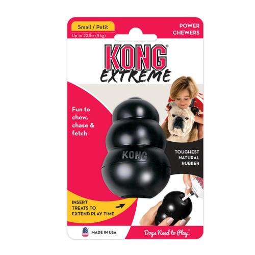 The KONG Extreme dog toy represents the most durable strength of KONG rubber.  Designed for the toughest of chewers, the KONG Extreme offers enrichment and helps satisfy dogs’ instinctual needs. The KONG unique, ultra-durable, natural rubber formula is designed for determined chewers, while the erratic bounce fulfills a dog’s need to play. Want to extend play time?  Be sure to stuff with tempting bits of kibble and entice with a dash of peanut butter. Stuff and Freeze for a longer-lasting challenge.   Product details Fill with your dog’s favourite treats mentally stimulating toy that offers enrichment by helping satisfy dogs’ instinctual needs KONG super-tough black rubber formula is specifically designed for power chewers unpredictable bounce for games and makes fetch fun recommended worldwide by veterinarians, trainers and dog enthusiasts made in the USA from globally sourced materials helps combat boredom and separation anxiety.