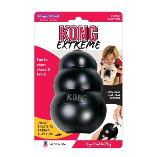 The KONG Extreme dog toy represents the most durable strength of KONG rubber.  Designed for the toughest of chewers, the KONG Extreme offers enrichment and helps satisfy dogs’ instinctual needs. The KONG unique, ultra-durable, natural rubber formula is designed for determined chewers, while the erratic bounce fulfills a dog’s need to play. Want to extend play time?  Be sure to stuff with tempting bits of kibble and entice with a dash of peanut butter. Stuff and Freeze for a longer-lasting challenge.   Product details Fill with your dog’s favourite treats mentally stimulating toy that offers enrichment by helping satisfy dogs’ instinctual needs KONG super-tough black rubber formula is specifically designed for power chewers unpredictable bounce for games and makes fetch fun recommended worldwide by veterinarians, trainers and dog enthusiasts made in the USA from globally sourced materials helps combat boredom and separation anxiety.