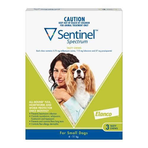 If we were Alice in Wonderland, we’d be able to drink some kind of potion, get really really small, and go and fight fleas and other little nasties that might attempt to infiltrate our dog’s health. Or we could give him a tablet. Our vote goes with the tablet. Sentinel Spectrum Chews provide 30-day protection against fleas, flea allergy dermatitis, heartworm and intestinal parasites, including hookworm, ringworm, tapeworm and roundworm. So you can steer clear of the rabbit hole and keep your dog healthy at the same time. Product details Suitable for small dogs weighing 4-11kg tasty chewable tablet to be administered monthly prevents heartworm infection controls roundworm, whipworm, hookworm and tapeworm prevents and controls fleas long term controls flea allergy dermatitis.
