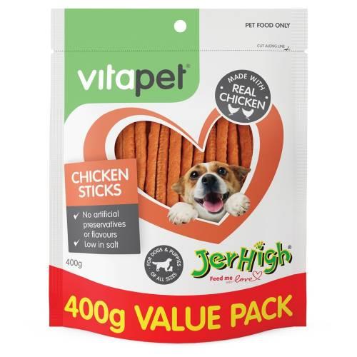 Give your dog a treat to remember with a tasty Chicken Stick from VitaPet. Made from real chicken, your dog will think it's Christmas morning when he gets one of these in his gob. Product details High in protein – real meat as first ingredient make an ideal training treat or good behavior treat perforated marks make it easy to break only 18 calories per treat and the breakable format is perfect for portion control suitable for dogs of all agesĀ ideal for those first training sessions with your puppy.